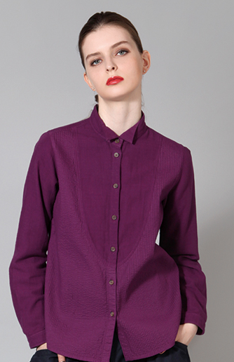 ピンタックが施してある身頃にはローンで、袖、前立て部分には少し厚手のブロードが施されています。
